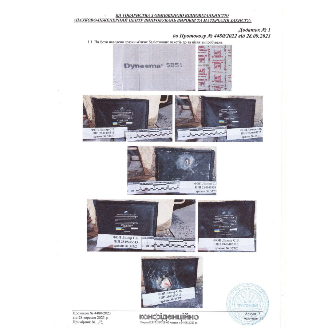8. Протокол випробувань: Разом з бронеплитами надається копія протоколу випробувань з лабораторії.