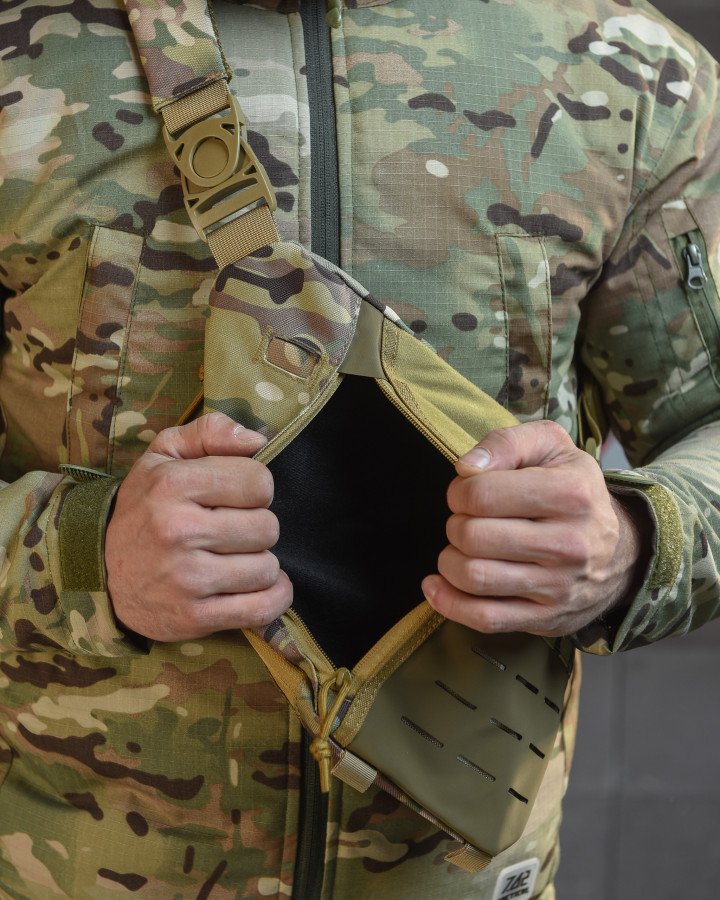 Призначення: компактна нагрудна сумка для прихованого носіння під верхнім одягом. Ідеальна для оперативного доступу до документів, телефону, павербанка або медичних засобів. Створена для військових, охоронців, волонтерів і цивільних користувачів у польових умовах.