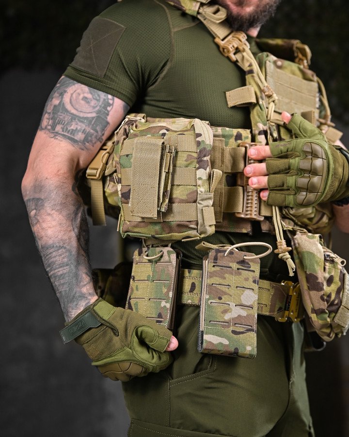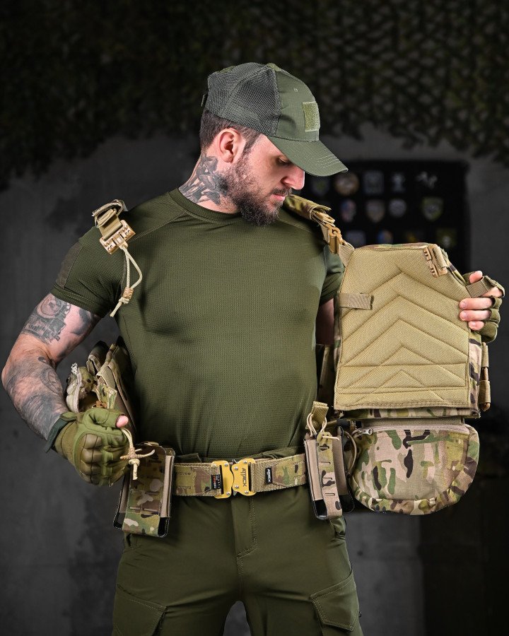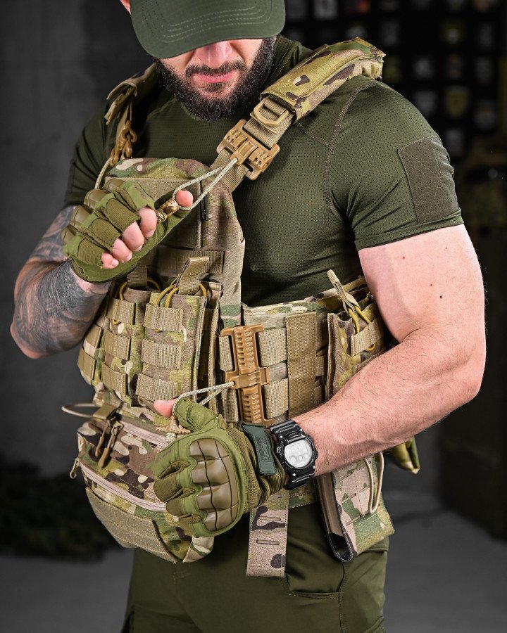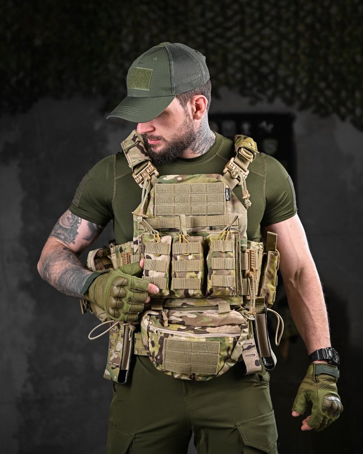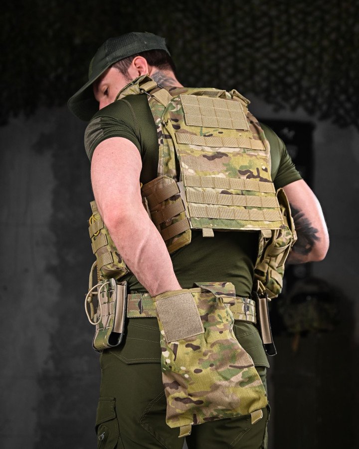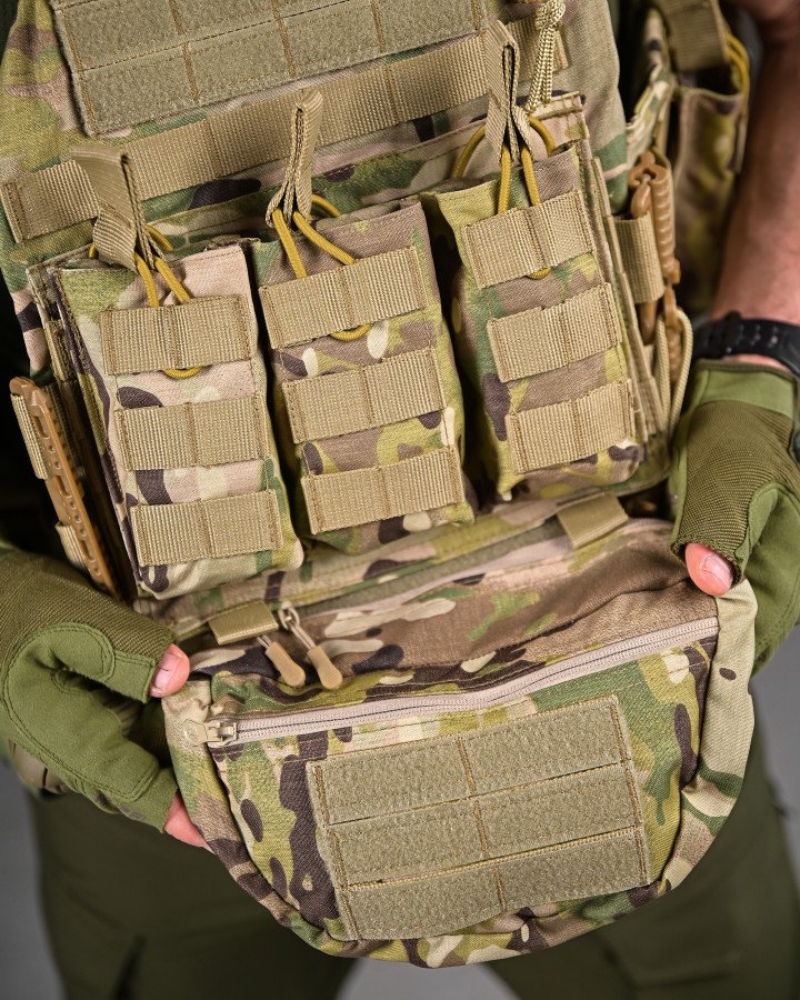 Призначення: універсальний бойовий комплект, що поєднує плитоноску та розвантажувальну систему (РПС) для виконання бойових, тактичних і польових завдань. Створений для зручності, мобільності та ефективного розміщення спорядження.