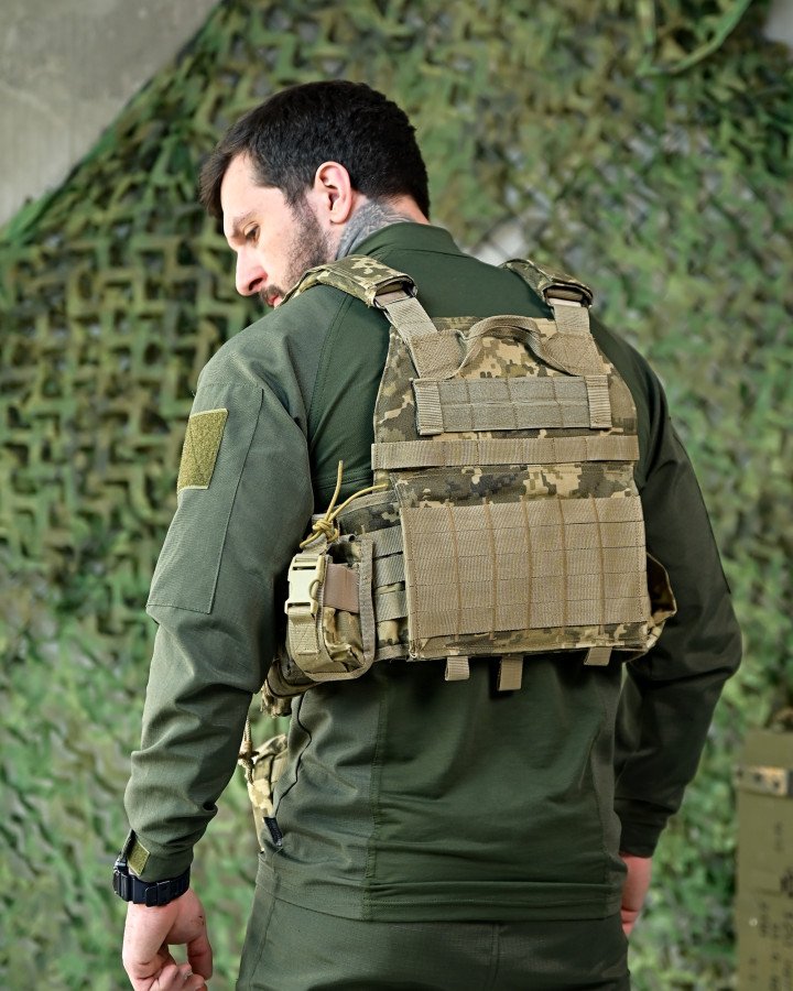 Призначення: бойова плитоноска нового покоління з повноцінною системою 4-точкового швидкого скидання — максимальна безпека та зручність у критичних ситуаціях. Створена для професійного використання у ЗСУ, ТрО, спецпідрозділах та охоронних структурах.