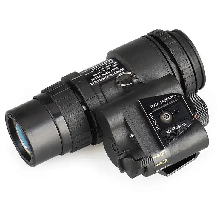 Інфрачервоний цифровий прилад нічного бачення PVS-18 – це компактний і багатофункціональний пристрій, який забезпечує чітке зображення як удень, так і вночі. За допомогою його високоякісної системи CMOS з низькою яскравістю, прилад здатний створювати кольорове зображення в денну пору і чорно-біле зображення в нічну пору.