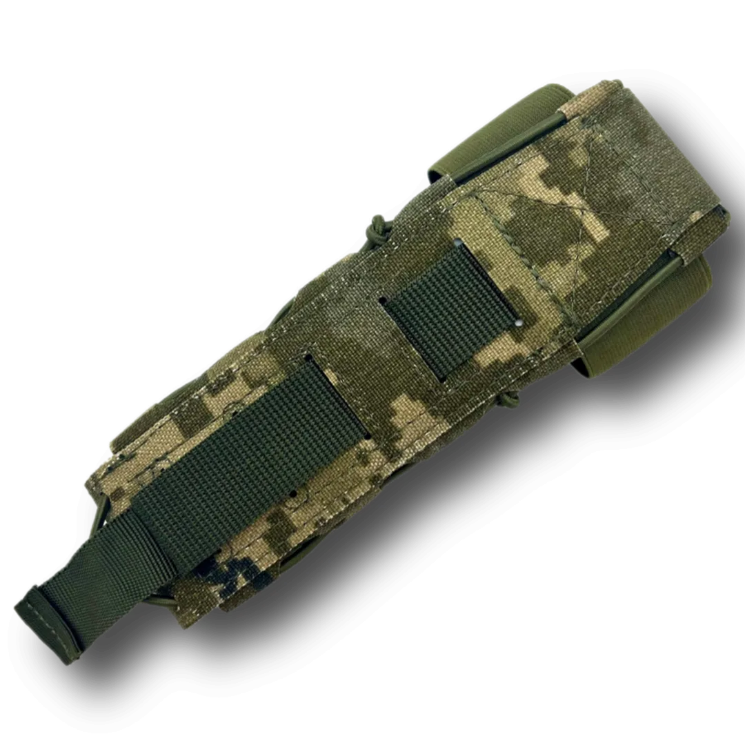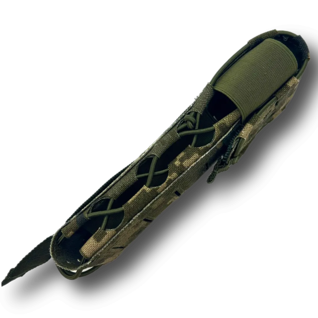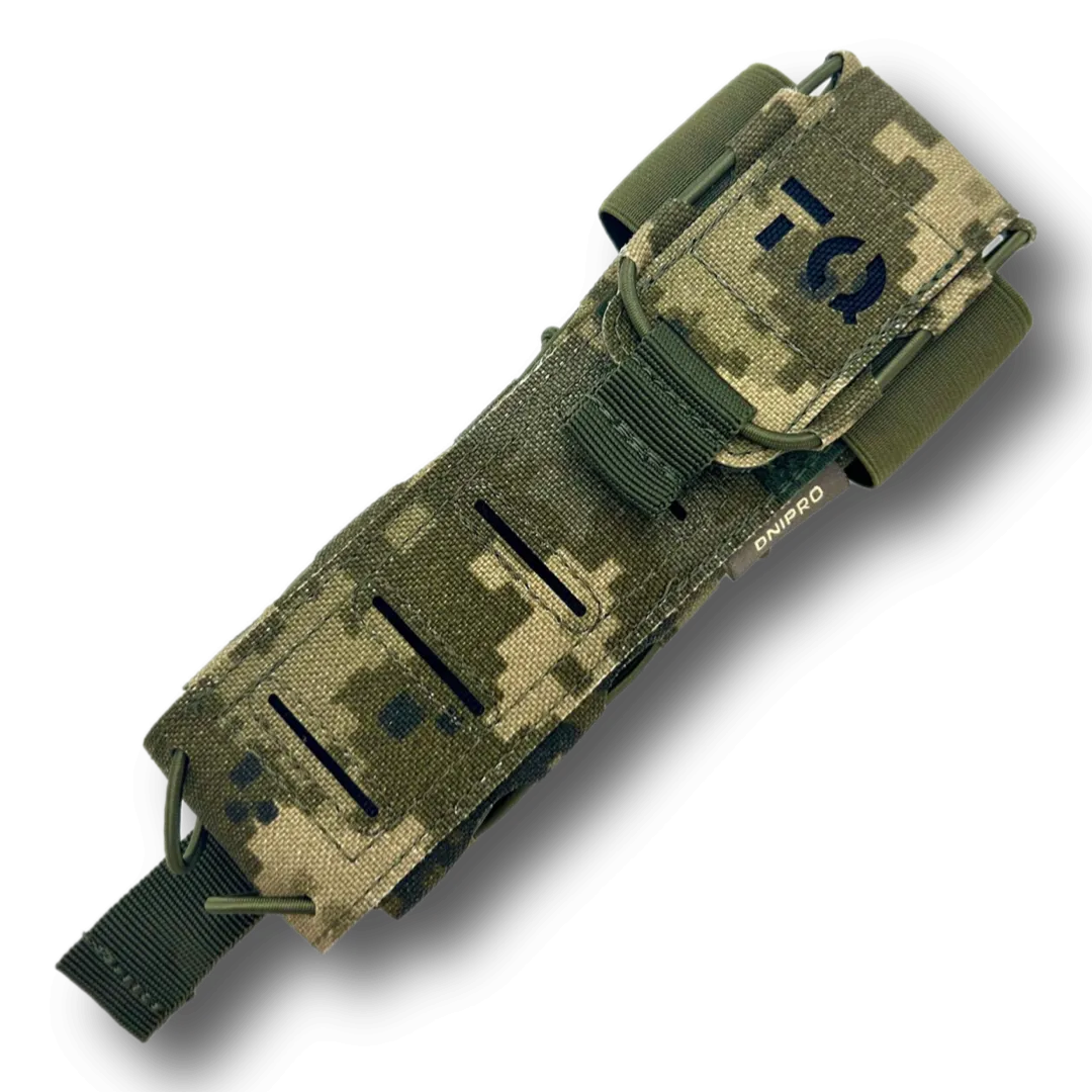 Підсумок “DNIPRO” – це ідеальне рішення для зберігання турнікетів на вашому тактичному спорядженні. Виконаний з високоякісних матеріалів, він гарантує надійність та довговічність. Бічні стінки з еластичних стрічок дозволяють зберігати не тільки кровоспинні джгути, а й інші предмети такого ж розміру, що робить його універсальним аксесуаром. Гумова стрічка-плетення з боків забезпечує додаткову фіксацію аксесуарів, що знаходяться всередині. Цей підсумок легко та зручно кріпиться до основного спорядження, що робить його незамінним елементом вашого тактичного екіпірування.
