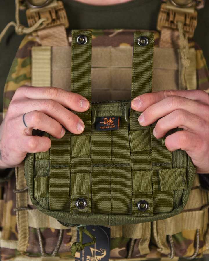 Призначення: універсальний підсумок для зберігання спорядження, магазину, турнікета, рації або інших необхідних речей у польових умовах. Створений для військових, бійців ТрО, мисливців, стрільців та працівників охорони.