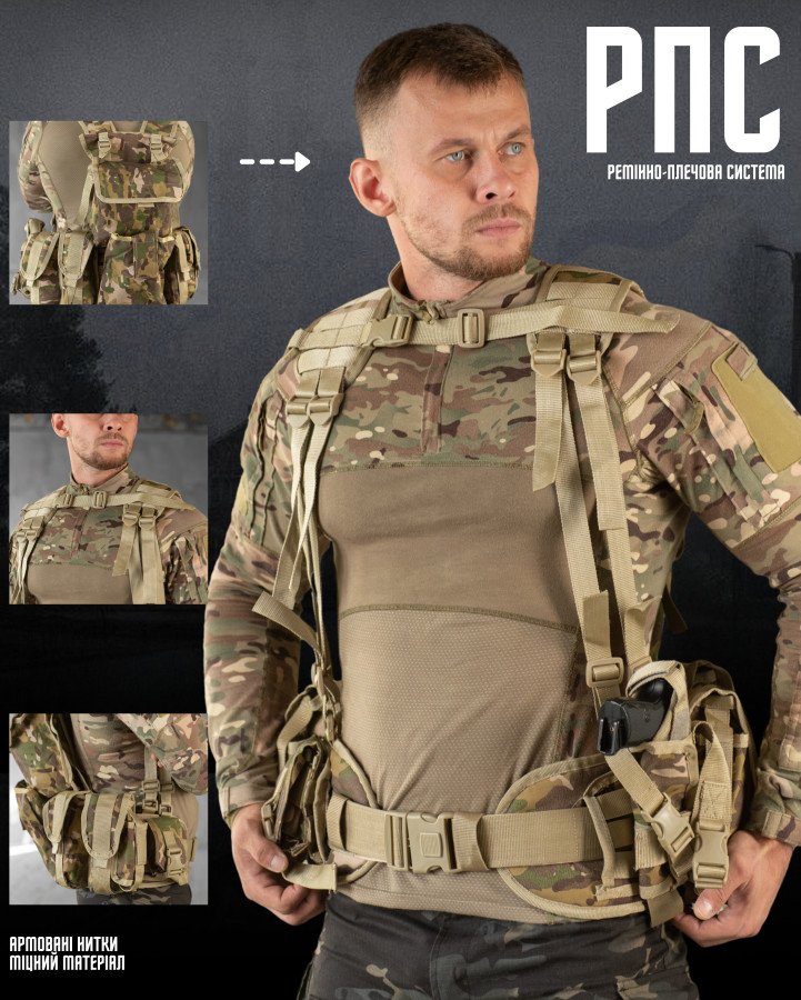Бойова РПС із тактичним рюкзаком у комплекті. Колір Multicam, повна MOLLE-сумісність, швидке скидання, зручна посадка. Готове рішення для польових умов.