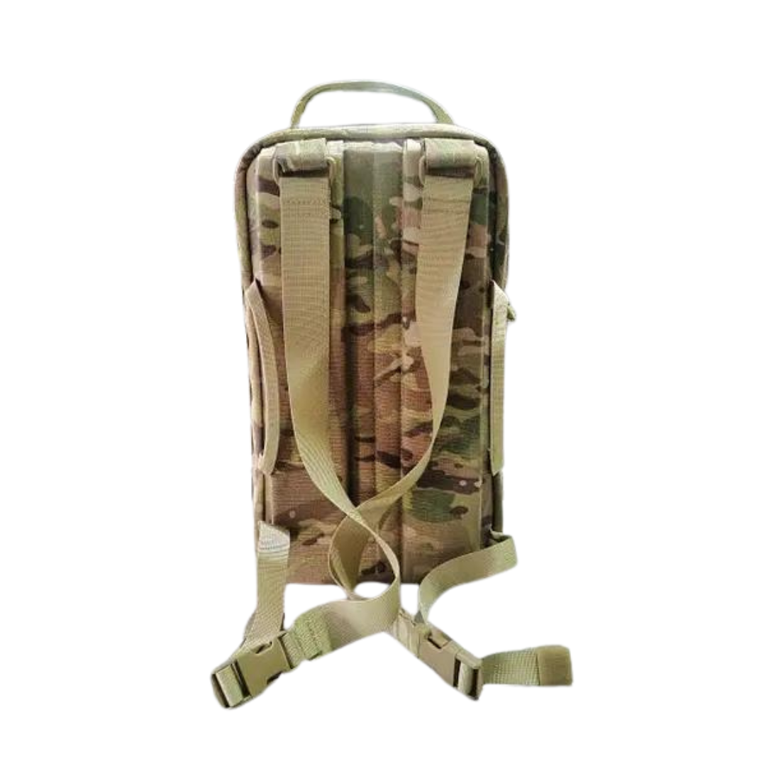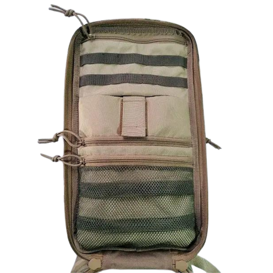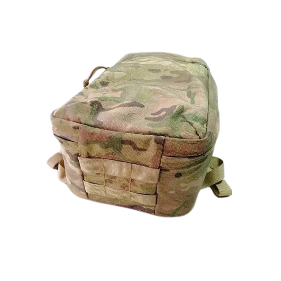 Рюкзак виконаний з надміцного матеріалу cordura 1000D, внутрішня частина обшита поліестером 600D та велкро тканиною (нейлон). Сordura не світиться, перевірено. Рюкзак оснащений посиленою блискавкою 10 мм max zipper, пластиковою фурнітурою Woojin, ременними стрічками та окантовкою з поліаміду.