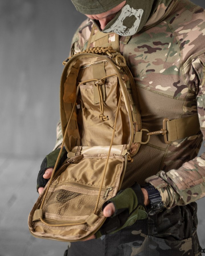 Призначення: легка тактична сумка на груди з паракордовим шнуром, призначена для зручного перенесення документів, радіостанції, турнікета, павербанка та інших EDC-елементів. Ідеальна для військових, стрільців, волонтерів і всіх, хто цінує функціональність.