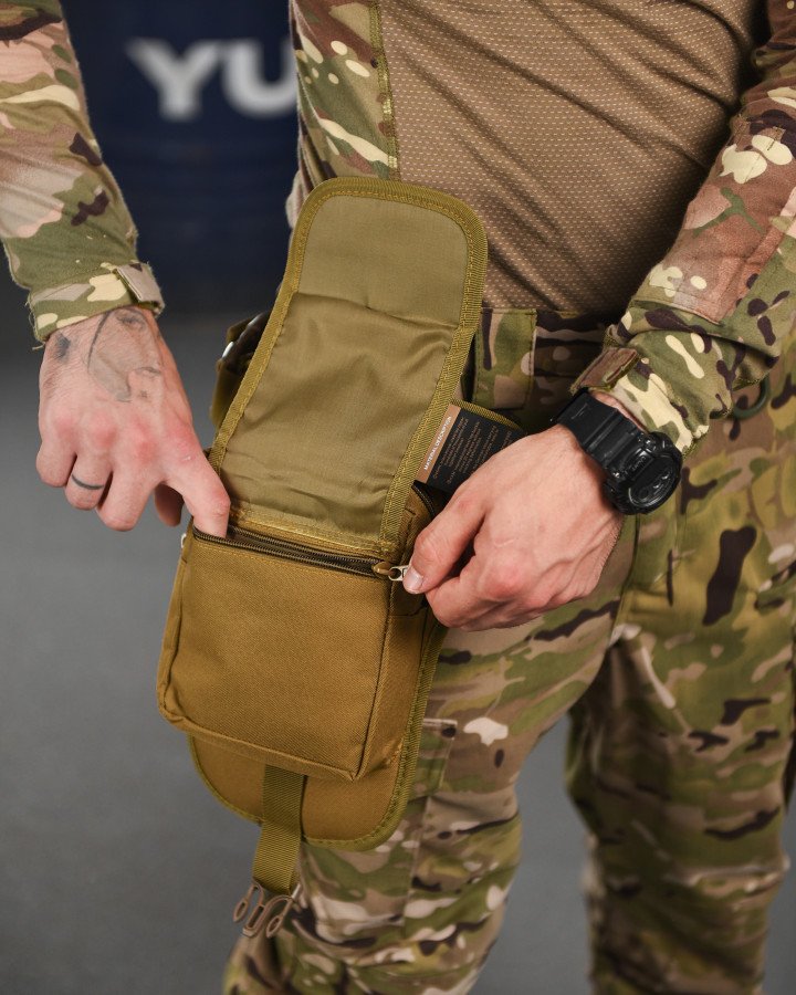 Призначення: сумка для швидкого доступу до спорядження — розроблена спеціально для розміщення на стегні. Ідеальна для стрільбищ, патрулювань, військових виїздів або тактичного використання в місті. Звільняє руки, не обмежує рухів, розвантажує пояс.