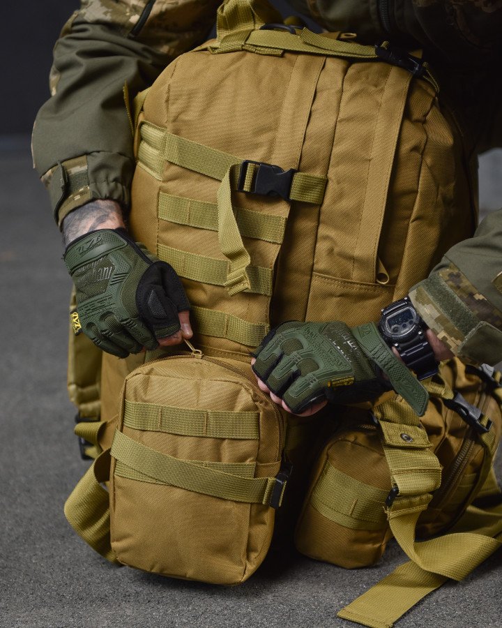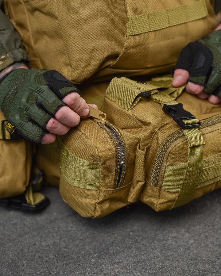 Тактичний рюкзак обʼємом 65 літрів. Колір койот, MOLLE-система, зручні лямки, поясний ремінь, посилені блискавки. Ідеально для багатоденних виїздів.