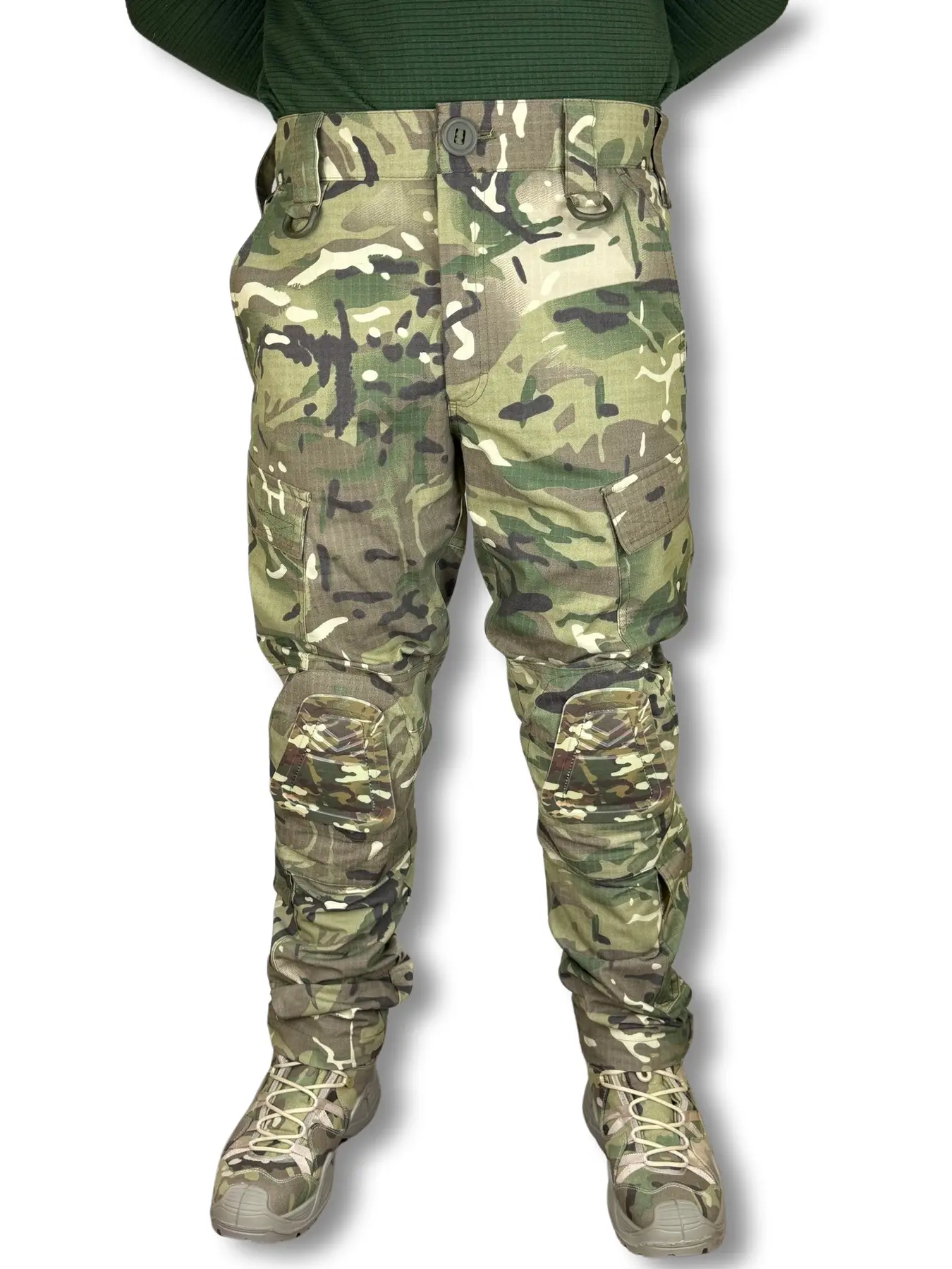 Тактичні військові штани в стилі Multicam створені для тих, хто потребує надійного та зручного одягу під час виконання бойових завдань та активного відпочинку. Виготовлені з міцного ріпстоп матеріалу, вони забезпечують відмінну зносостійкість та легкість у догляді. Наявність декількох кишень дозволяє зручно зберігати необхідні речі, а еластичні вставки на колінах забезпечують комфорт і свободу рухів. Ідеальні для використання в різних умовах — від міських до військових.