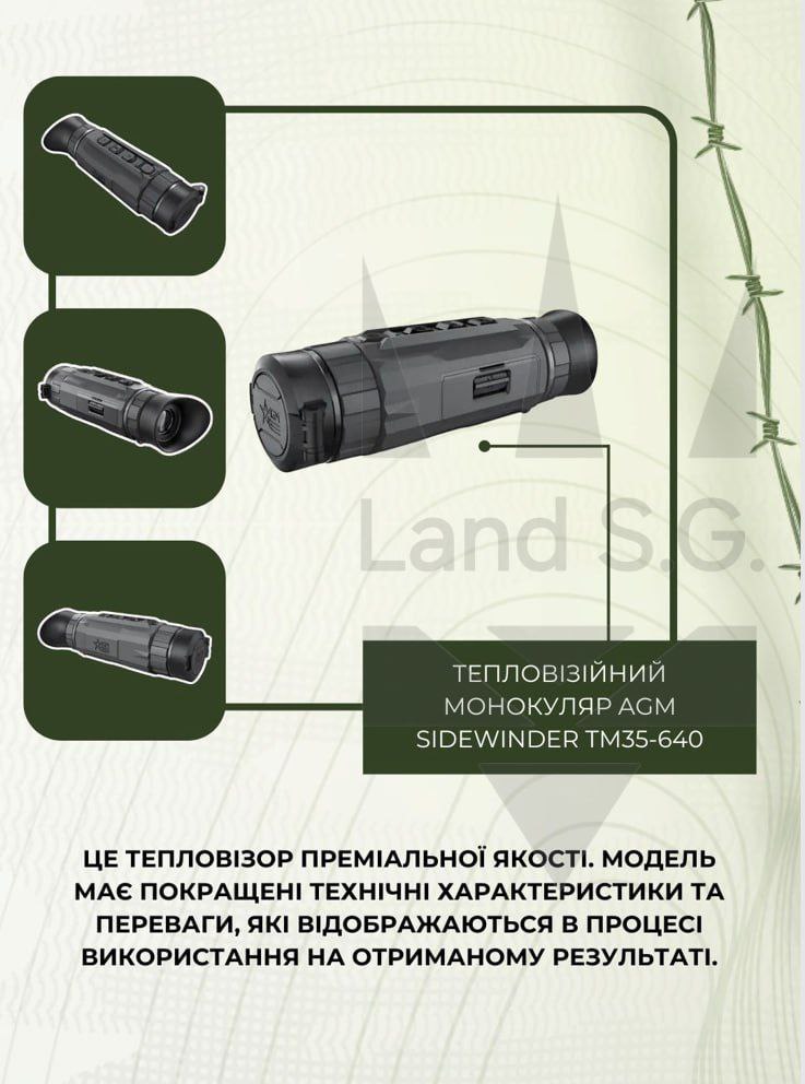 Серед широкого розмаїття тепловізійних монокулярів на особливу увагу заслуговує пристрій, представлений брендом AGM Sidewinder TM35-640. Це тепловізор, який належить до категорії портативних пристроїв преміальної якості. Модель має покращені технічні характеристики та переваги, які відображаються в процесі використання на отриманому результаті.