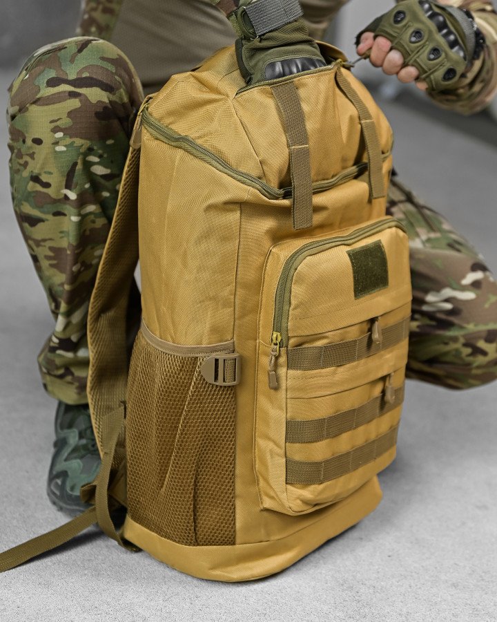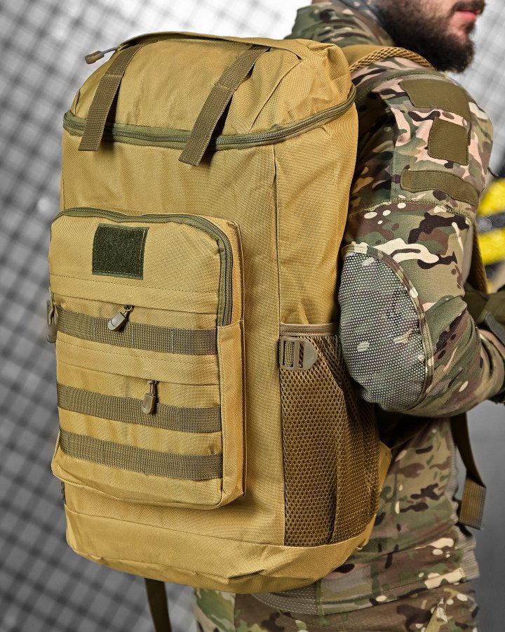 Місткий туристичний рюкзак на 60 літрів. Міцна тканина, колір койот, комфортна посадка, багато кишень. Підходить для походів і польових умов.