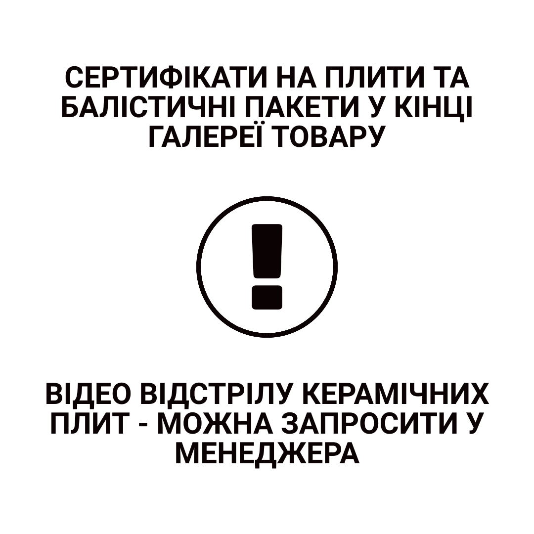 • Матеріал: UHMWPE (виготовлений з високомолекулярного поліетилену та відповідає 1а класу захисту згідно ДСТУ В 00.)
