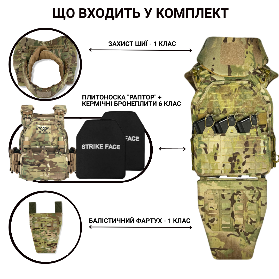 Балістичний комплект Раптор lvl 1 MultiCam з Керамічними плитами 6-го класу Захистом шиї та Напашником
