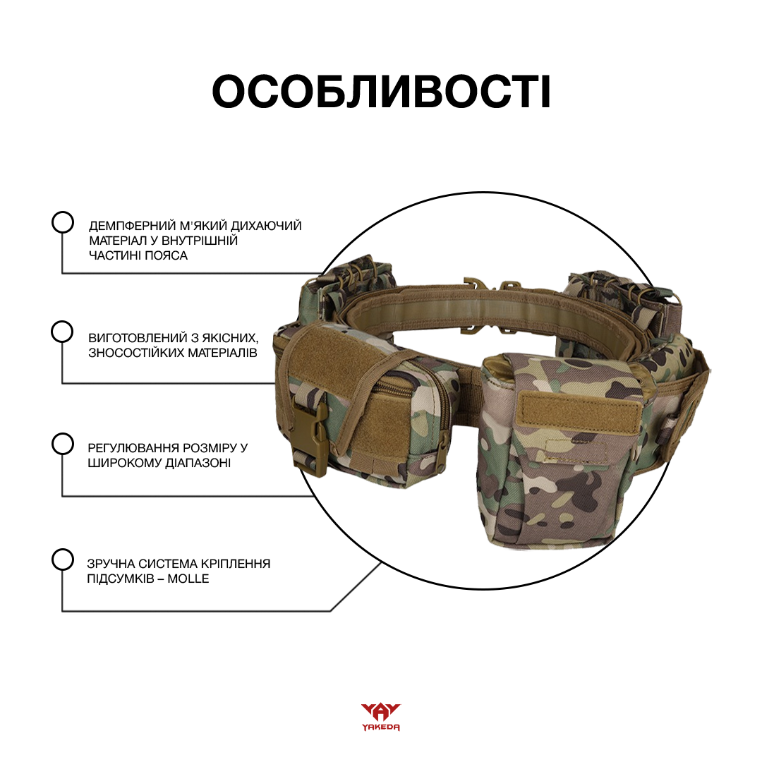 1. Зручний та ергономічний дизайн: Пояс YAKEDA розроблений з урахуванням комфорту та зручності носія. Його ергономічний дизайн дозволяє рівномірно розподілити навантаження, зменшуючи втомленість під час довгих місій.