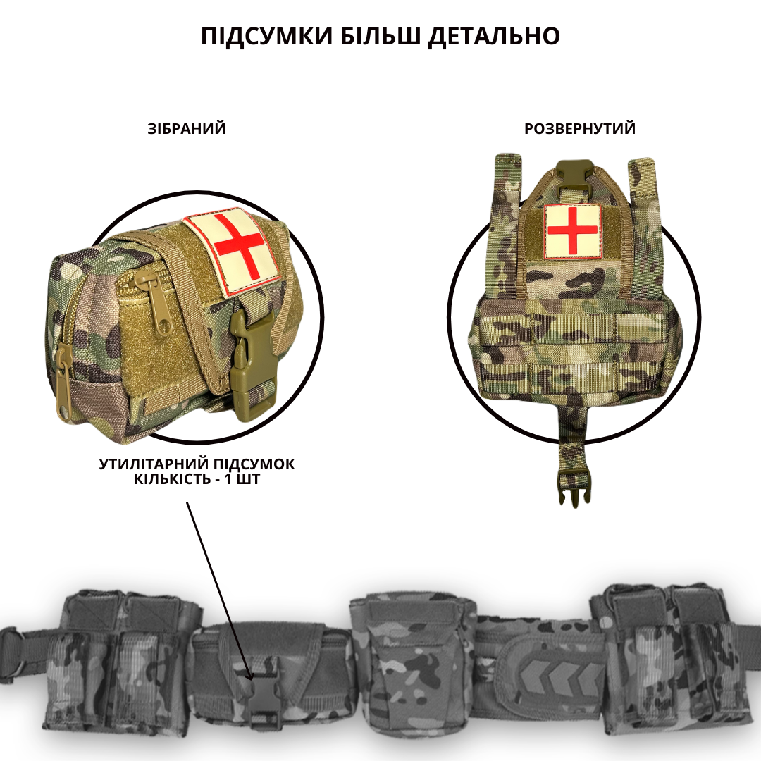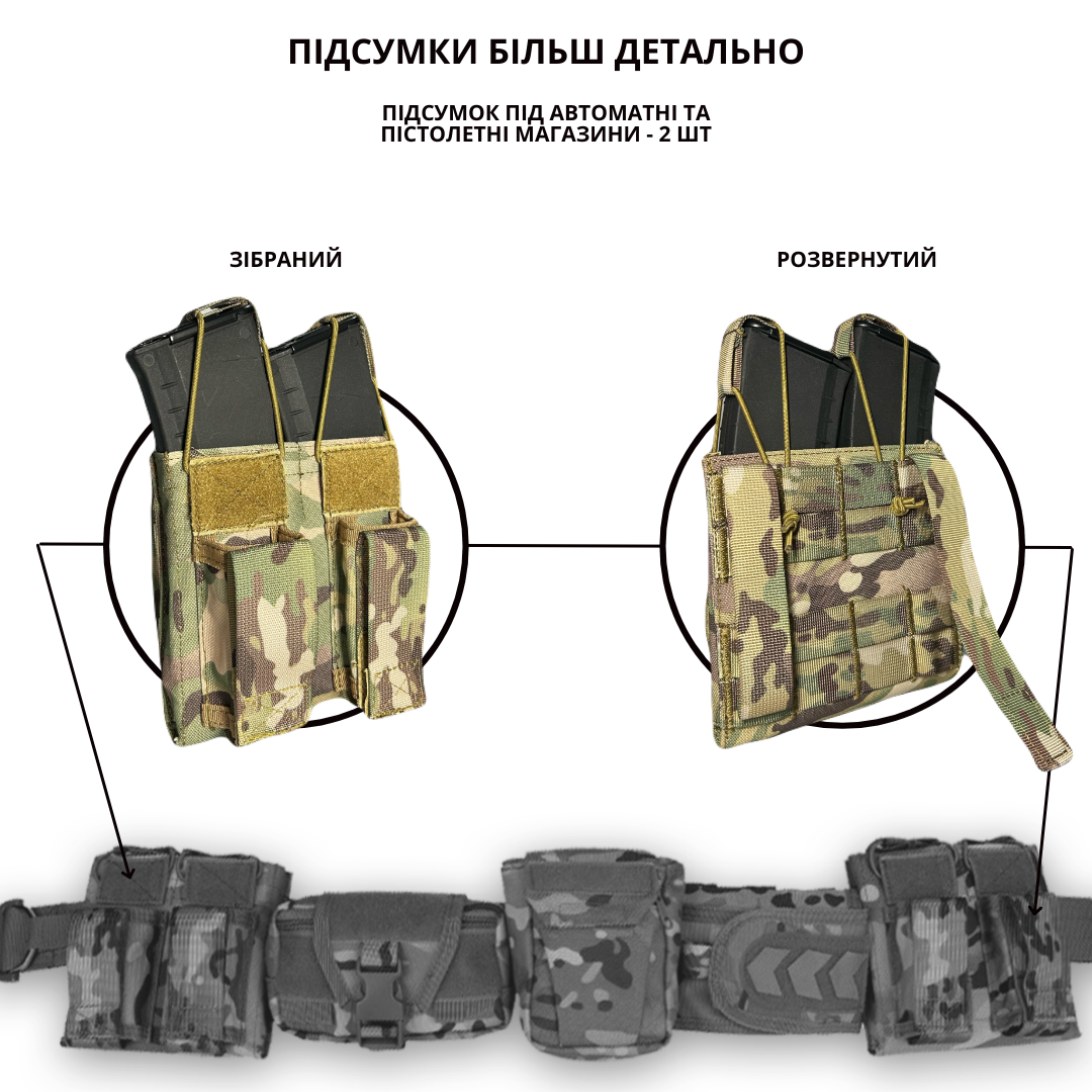 3. Модульна система: Пояс має модульну конструкцію, яка дозволяє легко налаштовувати та насилувати підсумки та інші аксесуари відповідно до потреб користувача.