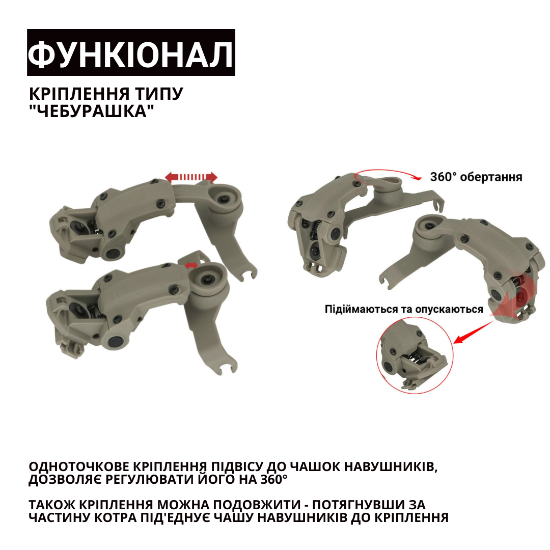 4. Шумозаглушення: Захисні навушники забезпечують рівень шумозаглушення на рівні 23 дБ завдяки двом все направленим мікрофонам, що допомагає бійцям зберегти комунікацію та сприяє їхній безпеці.